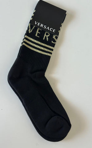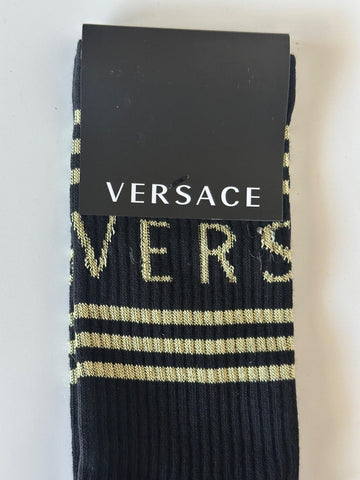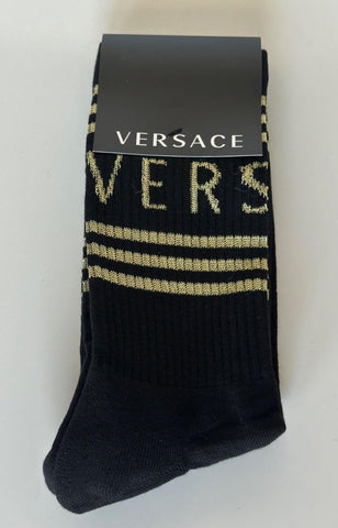 Versace Logo Socks Black/Gold Size Medium Made in Italy ICZ0003 NWT