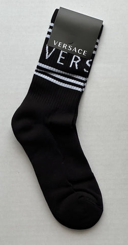Versace Logo Socks Black/White Size M Made in Italy ICZ0003 NWT $125