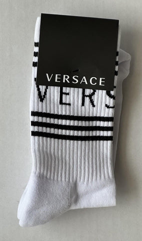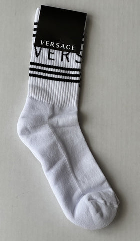 Versace Logo Socks White/Black Size M Made in Italy ICZ0003 NWT $125