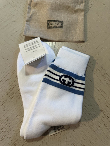 Gucci GG Logo Socks White Size Medium Made in Italy 676824 NWT