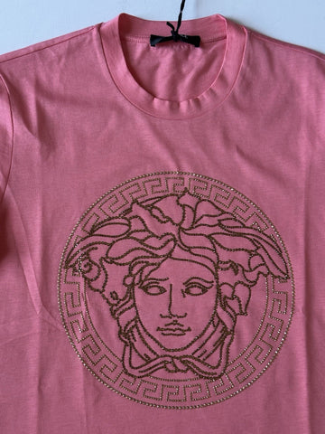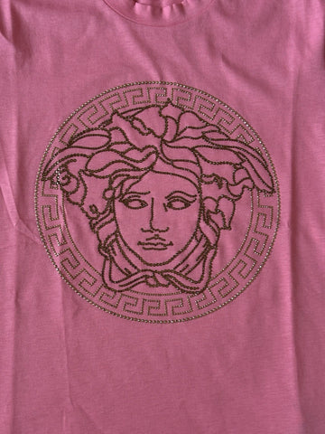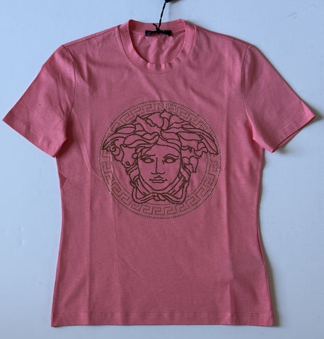 Versace Medusa Rhinestone Pink Cotton Jersey T-Shirt 6 (46) 1010069 NWT $750