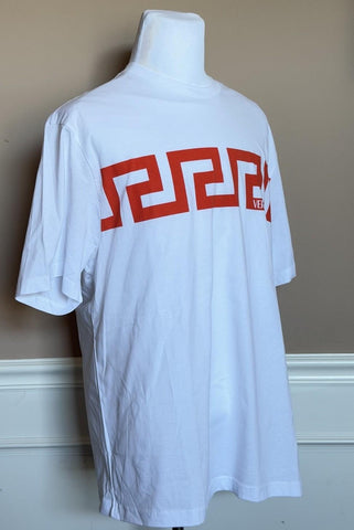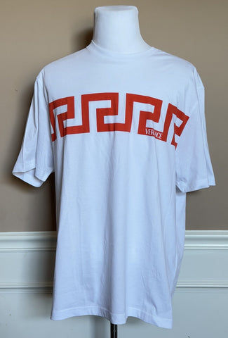Versace Greek Key Print Cotton Jersey T-Shirt White/Coral 3XL 1014427 NWT