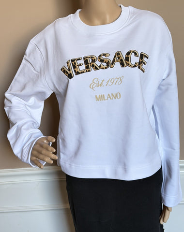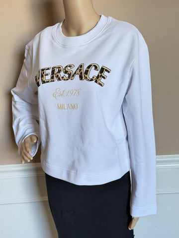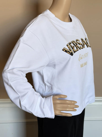 Versace Logo White Cotton Crop Sweatshirt 6 US (42 Euro) 1019251 NWT