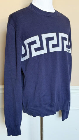 Versace Greca Knit Cotton Sweater Blue 50 Euro (Large) 1021724 NWT $1125