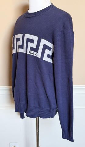 Versace Greca Knit Cotton Sweater Blue 54 Euro (2XL) 1021724 NWT $1125