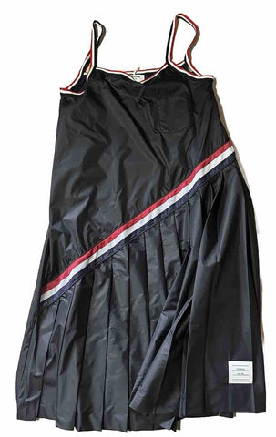 New $1200 Thom Browne Pleated Skirting A-line Dress Black Size 46/10 Italy