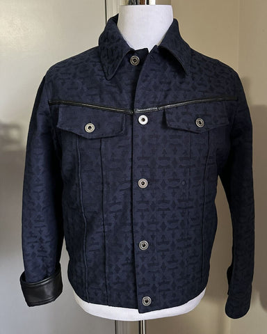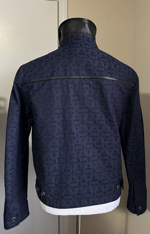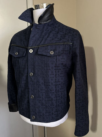 Neu 1490 $ Salvatore Ferragamo Herren Baumwolle/Lederjacke Schwarz/Blau 40 US/50 Eu