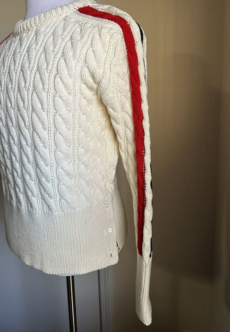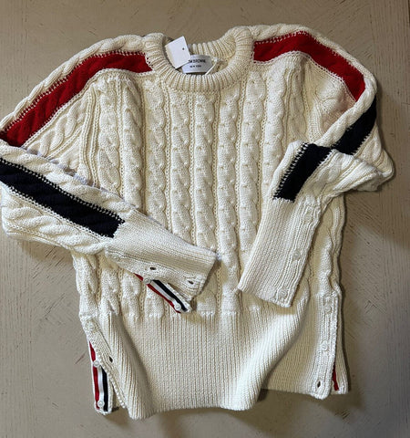 Neu mit Etikett: Thom Browne Herren-Pullover aus Merinowolle mit Zopfmuster, Weiß, Größe S (1), Irland