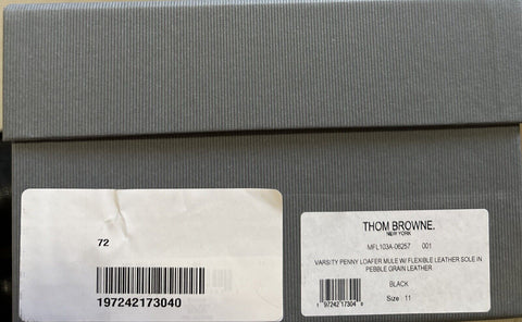 Thom Browne Men Leather Penny Loafers Sandal Shoes Black 11 US / 44 EU Italy New