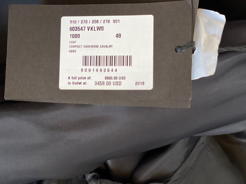 Bottega Veneta Mens Cashmere Black Coat 38 US (48 Euro) 603547 Italy NWT $6900