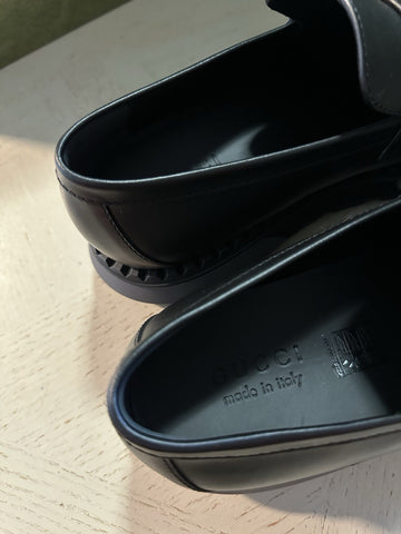 Gucci Men Leather Loafers Shoes Black 10.5 US/9.5 UK New $1100 758593