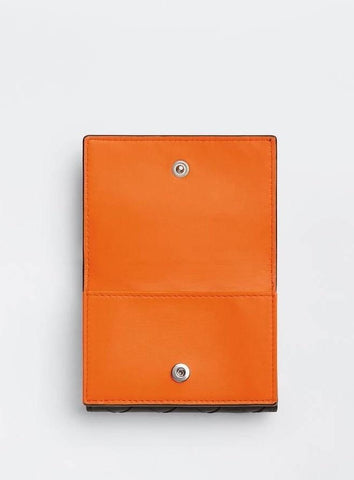 Bottega Veneta Tiny Tri-fold Black/Papaya Wallet Leather 667036 NWT $690