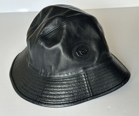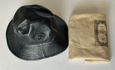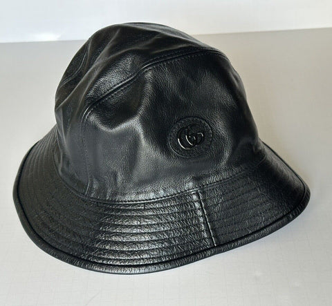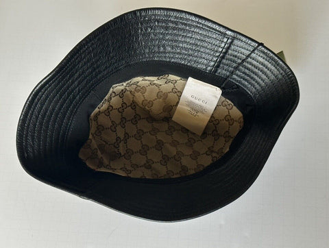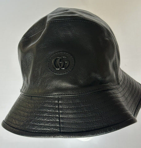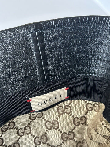 Gucci GG Leather Black Bucket Hat Made in Italy Medium (58 cm) 727239 NWT