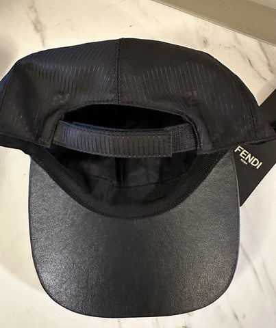 NWT $770 Fendi Logo Leather/Nylon Baseball Cap Hat Black/Navy One Size Italy