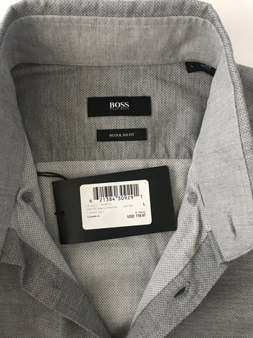 Hugo Boss Leonard2 Mens Regular Fit Cotton Gray Dress Shirt Large NWT $165