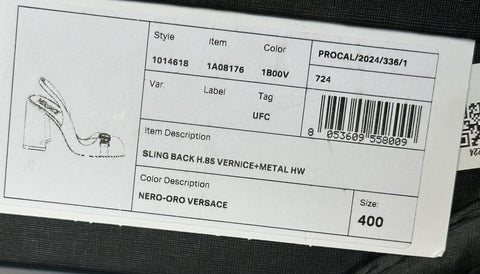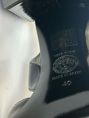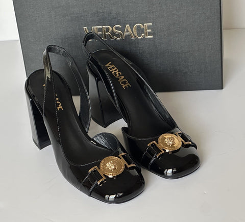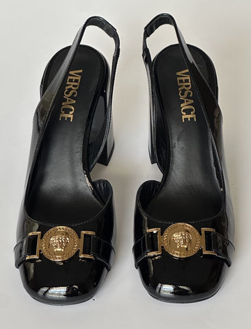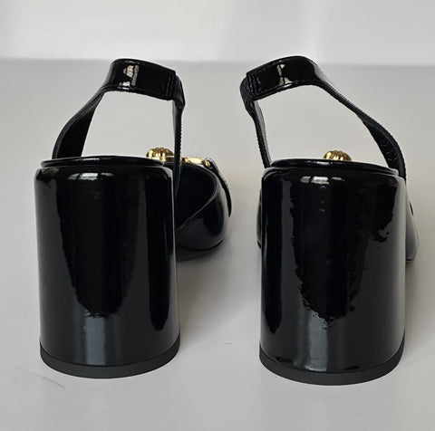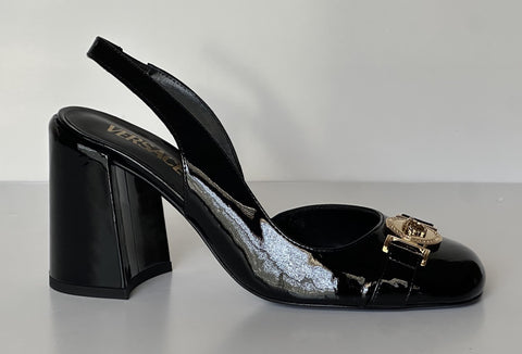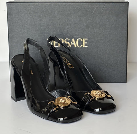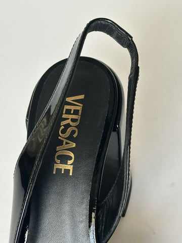 Versace Medusa Head Sling Back Patent Leather Black Shoes 10 US 1014618 NIB