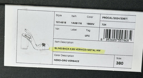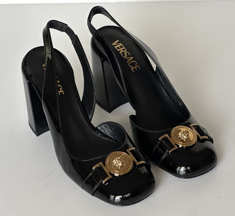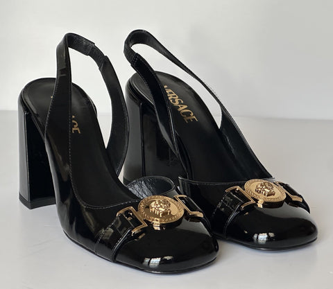 Versace Medusa Head Sling Back Patent Leather Black Shoes 8 US 1014618 NIB $1000