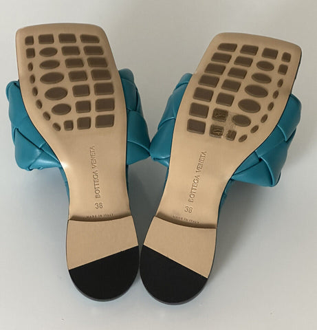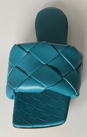 NWT $1350 Bottega Veneta Petroleum Blue Flat Sandals Shoes 8 US 608853