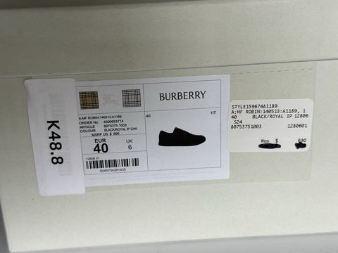 Burberry Leather Sneakers Black/IP Check 7 US (40 Euro) 8075375 IT NIB $690