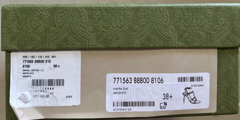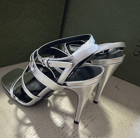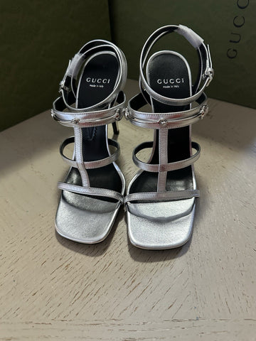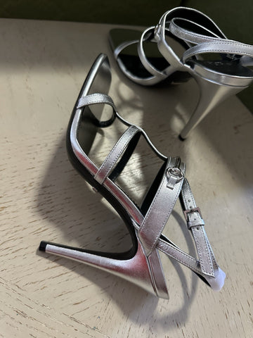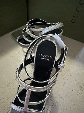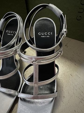 Gucci Women’s Leather Dress Sandal Shoes Silver 8.5 US/38.5 Eu New 771563
