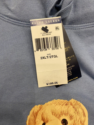 New $188 Polo Ralph Lauren Long Sleeve Bear Sweater with Hoodie Blue 2XLT/2TGL