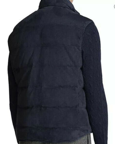 New $2995 Ralph Lauren Purple Label Men Marbell Reversible Suede Vest Navy XL