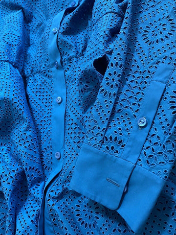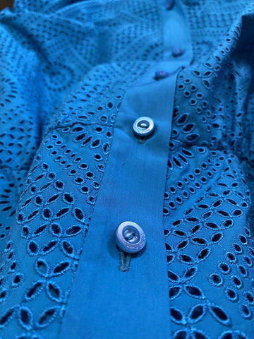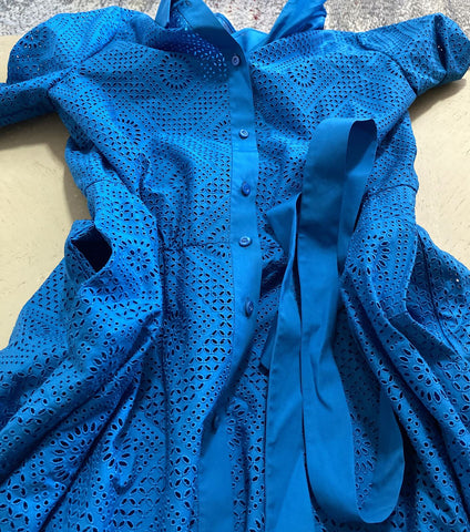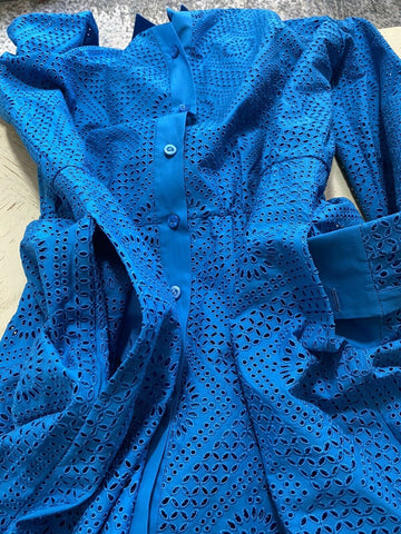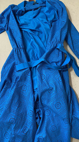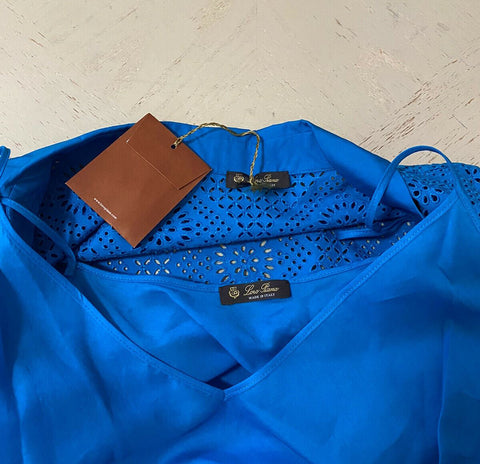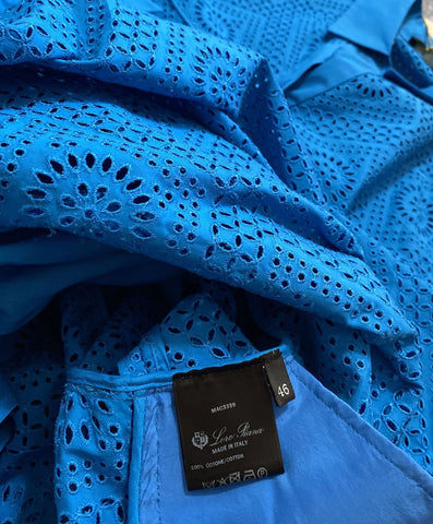 New $3600 Loro Piana Lucienne Eyelet A-Line Shirt Dress Blue 46/12 Italy
