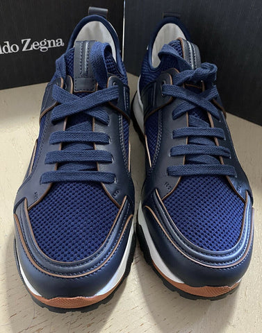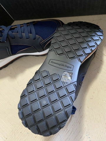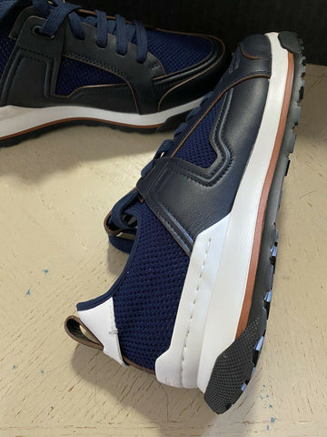 New $775 Ermenegildo Zegna Leather Sneakers Shoes Black/Blue 13 US Italy