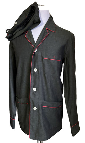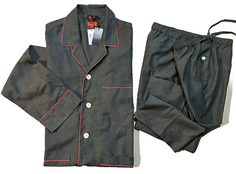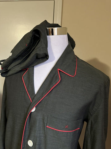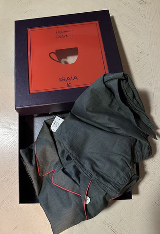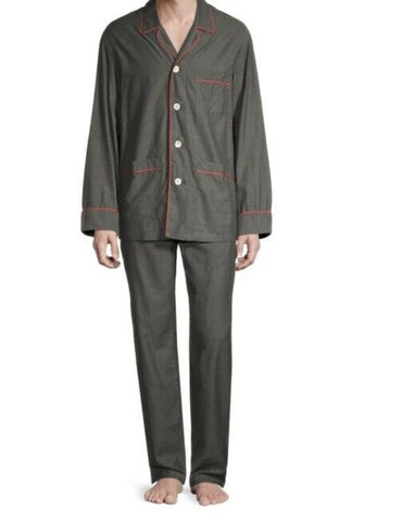 New $850 Isaia Cotton Flannel 2-Piece Pajama Set Color Gray Size L