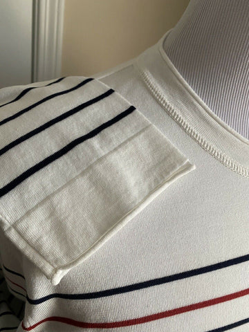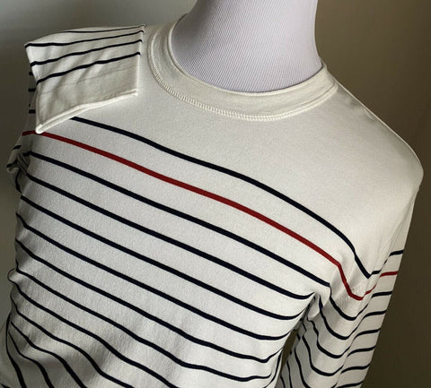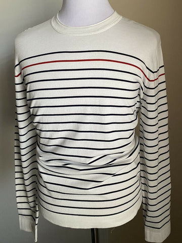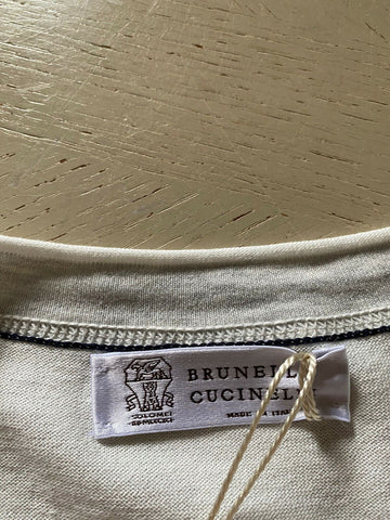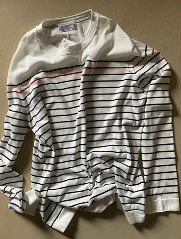 New $995 Brunello Cucinelli Men Crewneck Top Striped Sweater White M ( 50 Eu)