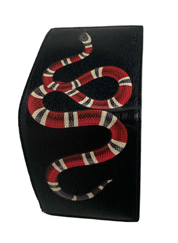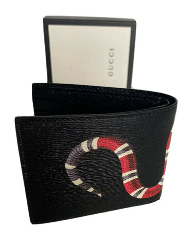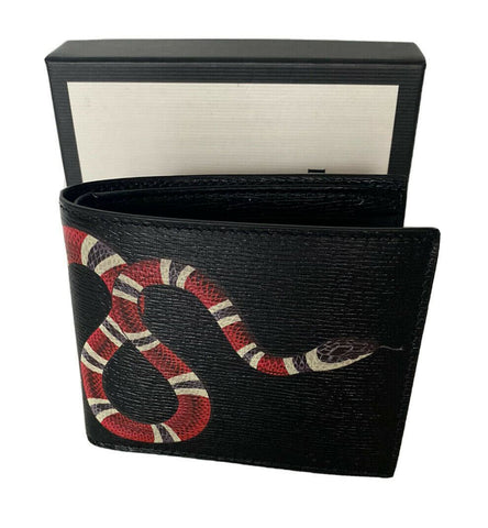 New Gucci GG Kingsnake Print Bifold Leather Black Wallet Made in Italy 451268
