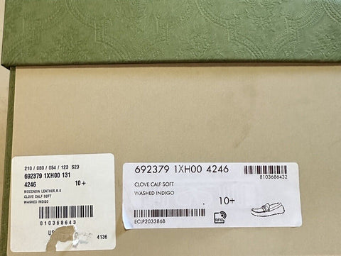 New Gucci Men Leather GG Driver Loafers Shoes Blue 11 US/10.5 UK 692379