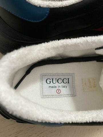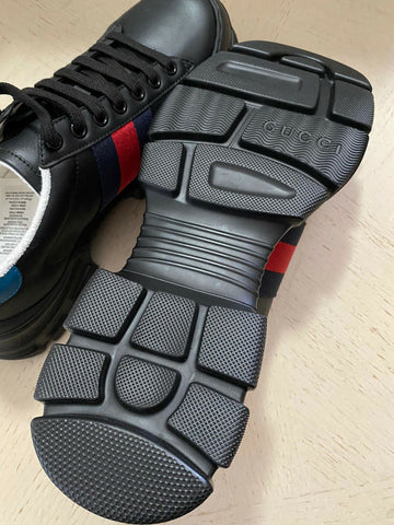 New Gucci Men’s Leather Sneakers Shoes Black 8 US ( 7 UK ) 624701