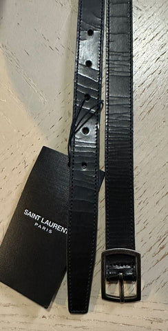 New Saint Laurent Men CINTURA PRINT Leather Belt Black 80/32