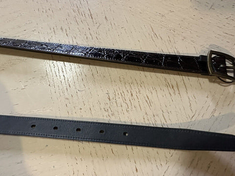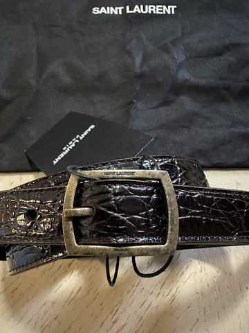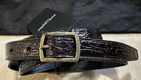 New Saint Laurent Men Crocodile Embossed Leather Belt Black 100/40