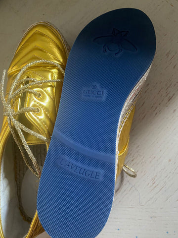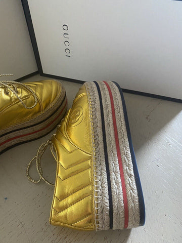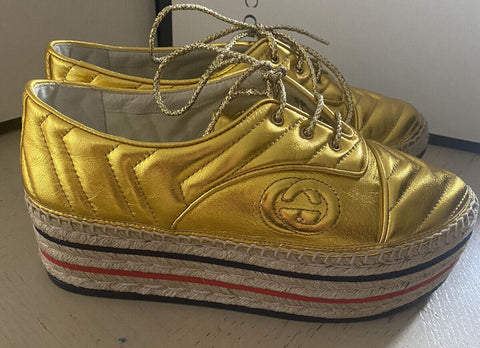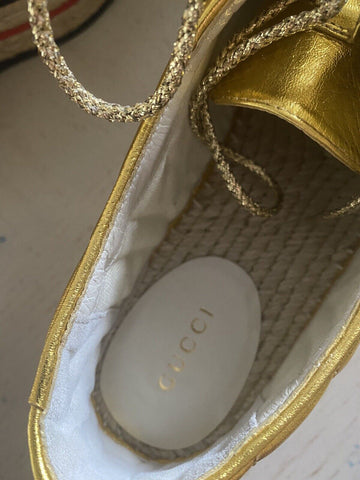 NIB $1500 Gucci Women Leather GG Espadrille Shoes Gold 6 US/37 Eu