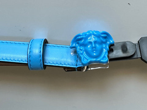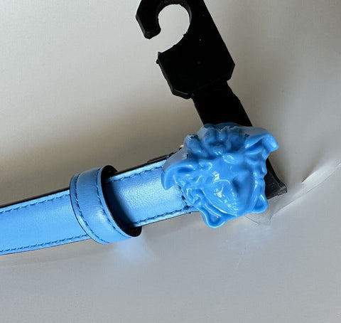 NIB $425 Versace Medusa-Buckle Blue Slim Leather Belt 85 (34) IT DCDI145