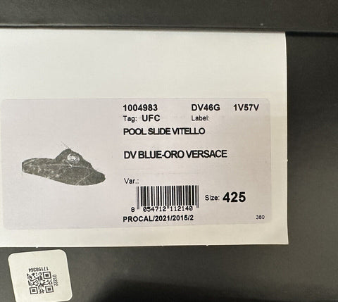 NIB $575 Versace Gold Medusa Leather/Rubber Sandals Blue 9.5 (42.5) 1004983 IT