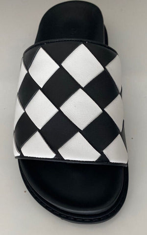NIB $690 Bottega Veneta Men's Intrecciato Black/White Sandals 7 US (40) 578264