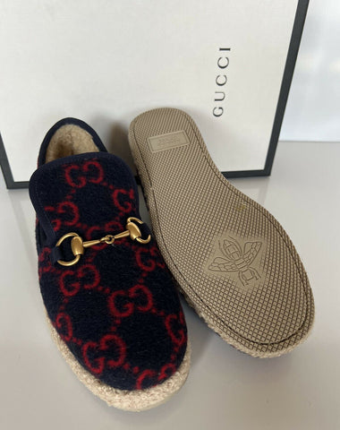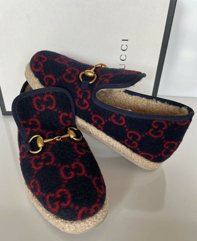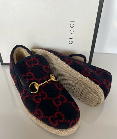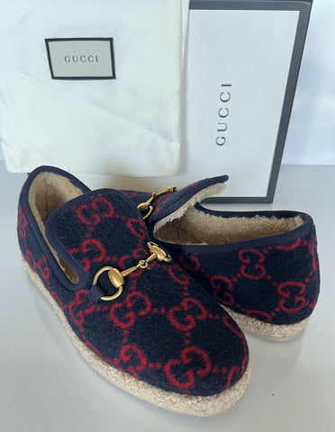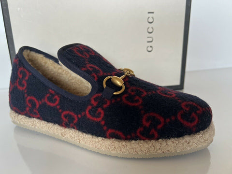 NIB $750 Gucci Horsebit GG Wool Blue Loafers 6.5 US (36.5 Eu) Italy 575850