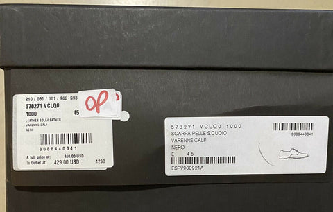 NIB $840 Bottega Veneta Men Leather Dress Shoes Black 12 US/45 Eu Italy