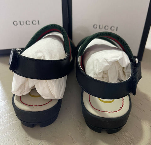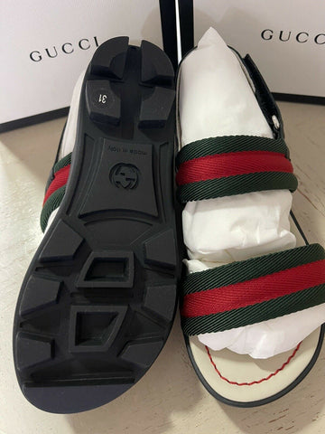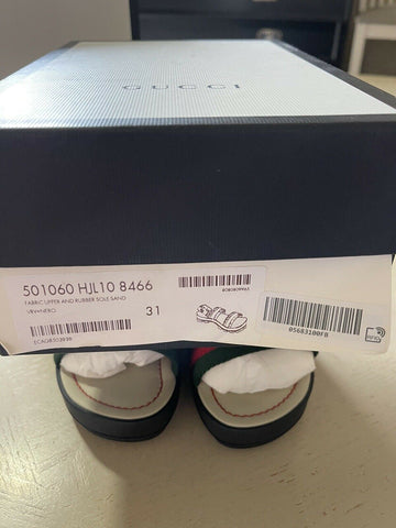 NIB Gucci Kids Canvas/Leather Sandal Shoes Black/Red Size 31/13US Age 6.5