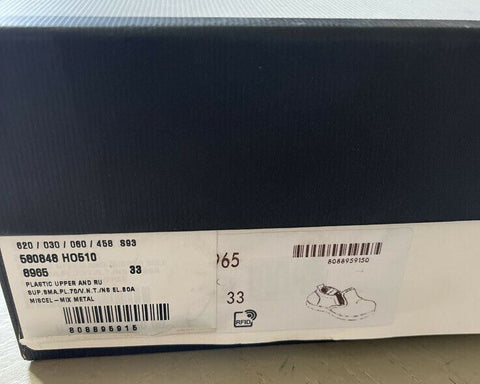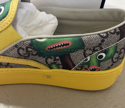 NIB Gucci Kids GG Monogram Leather/Canvas Sneakers Green/Cray 33/2US Age 7