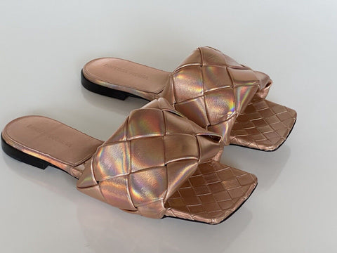 NWT $1350 Bottega Veneta Lido Violet - Old Rose Flat Sandals Shoes 7.5 US 608853