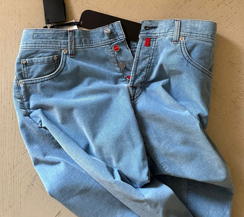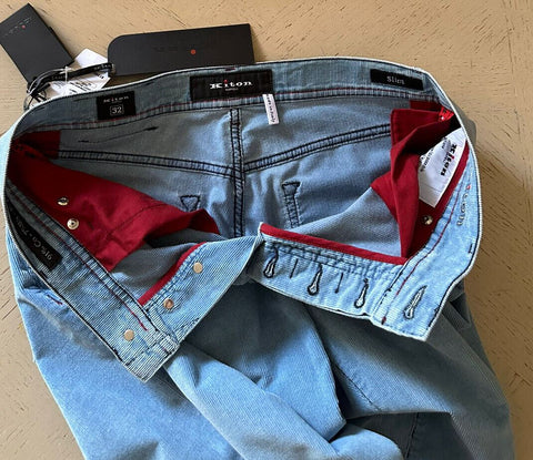 NWT $1395 Kiton Men Slim Fit Corduroy Cotton Cashmere Pants Blue 32 US/48 Eu