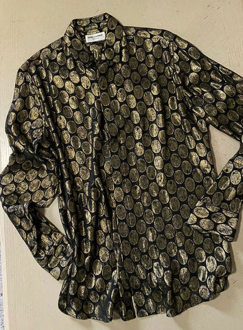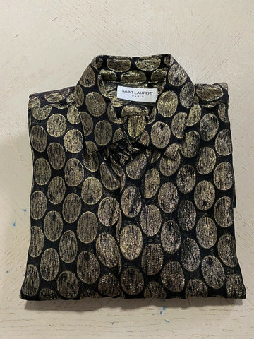 NWT $1490 Saint Laurent Mens Silk Dress Shirt Black/Gold S ( 37/14.5 ) Italy