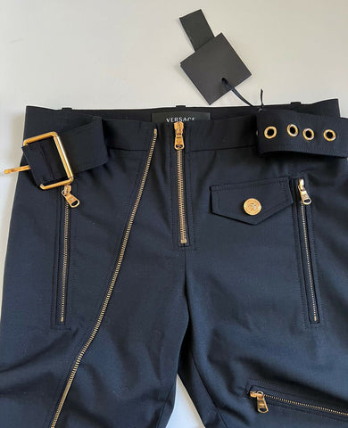 NWT $1525 Versace Women's Black Multi Zip Wool Pants 4 US (38 Euro) A87140 IT
