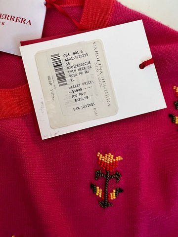 NWT $1990 Carolina Herrera Women’s Rose Pink Cashmere/Silk Crewneck Cardigan XL