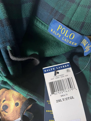 NWT $228 Polo Ralph Lauren Long Sleeve Bear Sweater with Hoodie Green 2XLT/2TGL