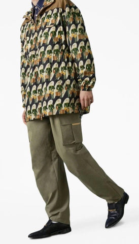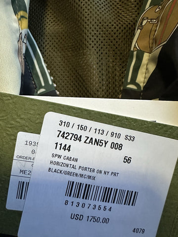 NWT $3500 Gucci Men Porter-print zip-up Jacket Black/Green/Multi 46 US/56 Eu